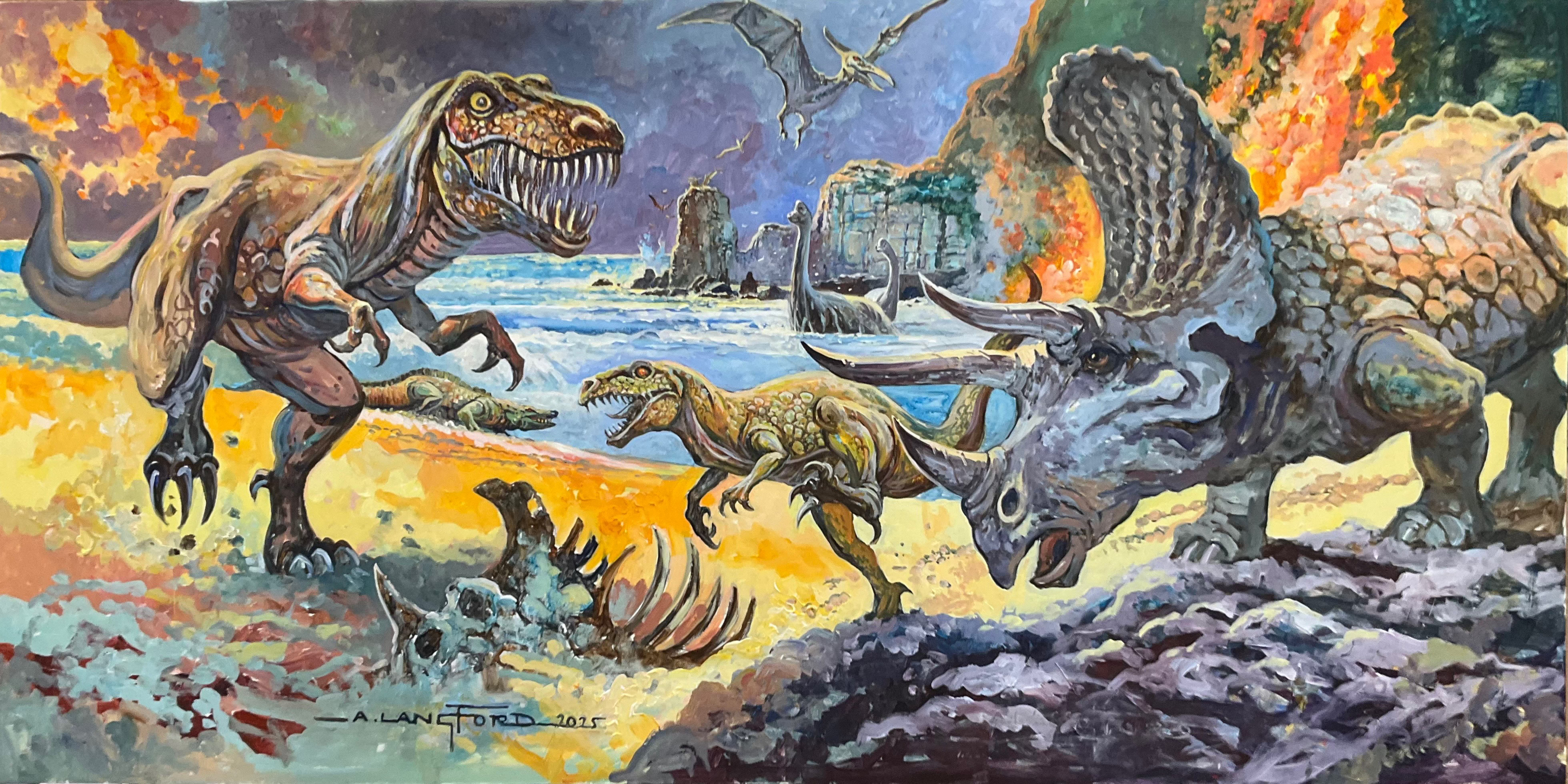 New Forest gardens taken over by dinosaurs… check out some stunning mural art by 2000AD veteran Alan Langford