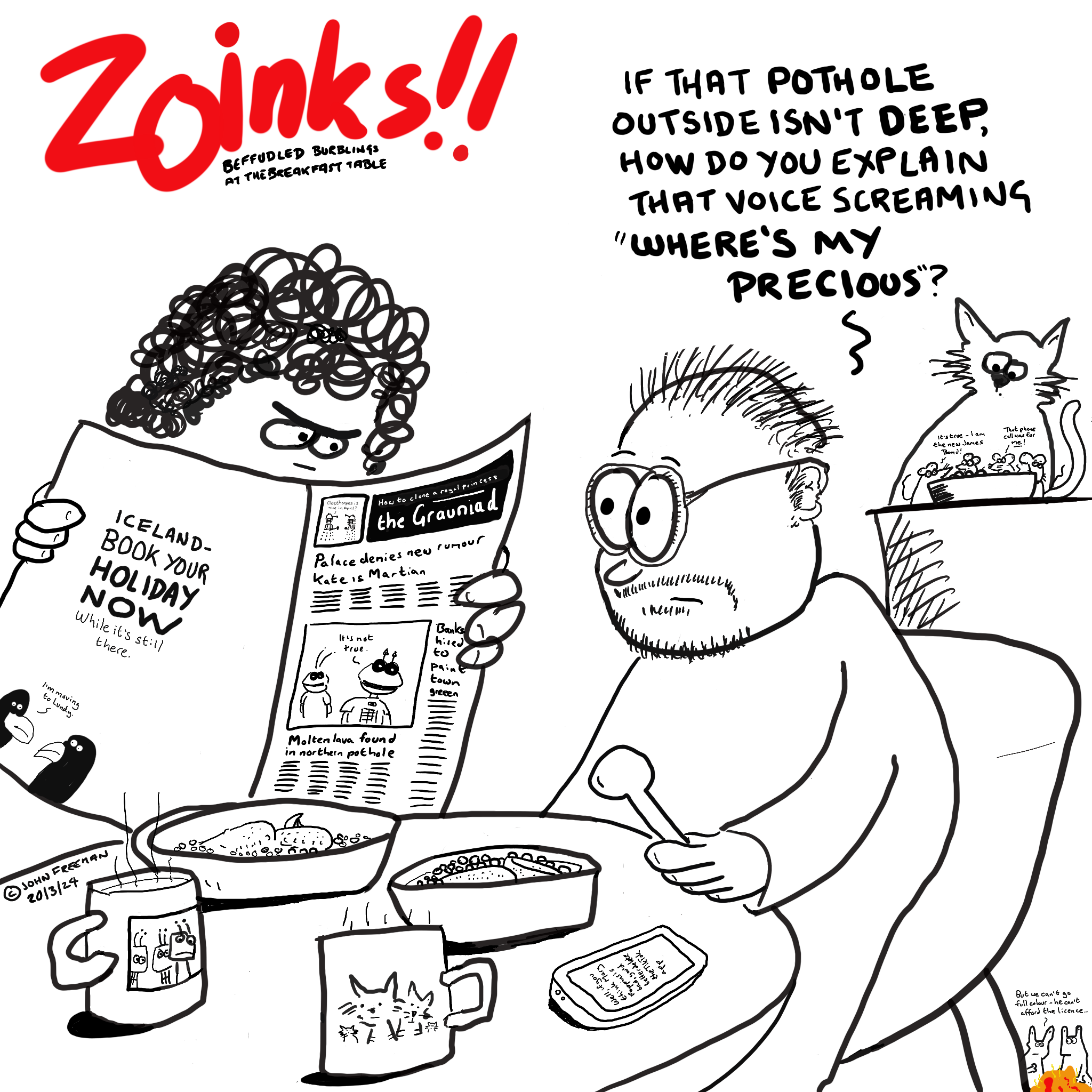 I’m currently doing these Zoinks!! cartoons for fun as a mental warm up. Or, I’m just mental. The best way to read past ones is on the downthetubes Tumblr, they’re not on the main site