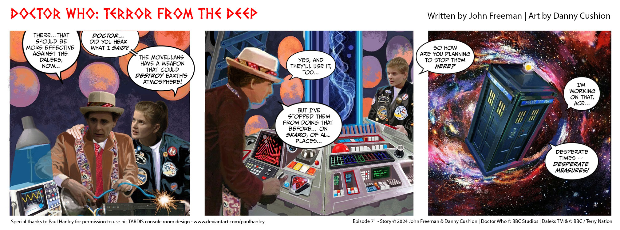 Because you’re lovely for subscribing to my newsletter, here’s this week’s slice of Doctor Who - Terror from the Deep, a not-for-profit strip by me and artist Danny Cushion, a day early! (If you missed earlier episodes, Doctor Who – Terror from the Deep can be reead here from the start… or check it out on Flickr!