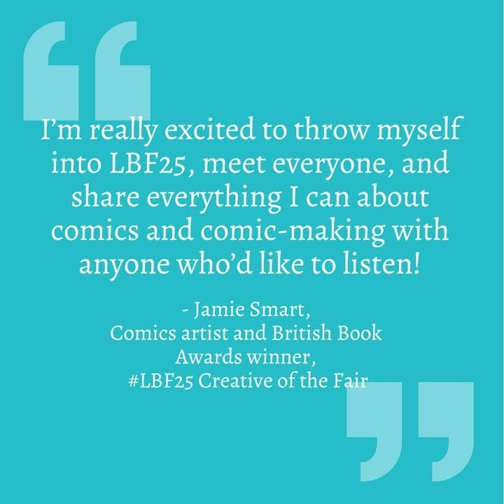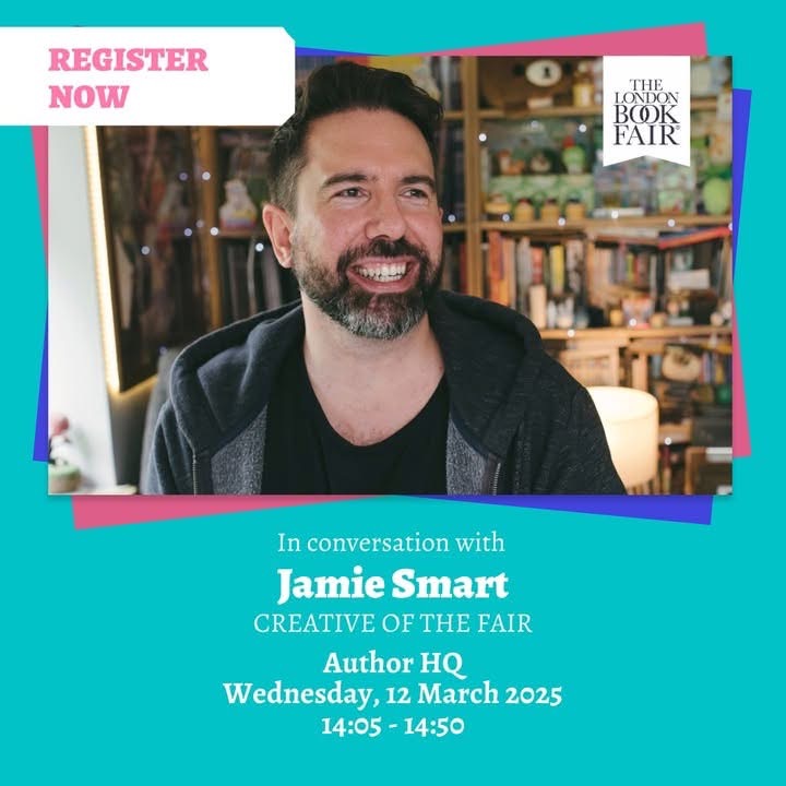 • Don’t miss a captivating discussion with comics creator and British Book Awards winner Jamie Smart (Bunny vs Monkey and more) as the first ever Creative of the Fair…