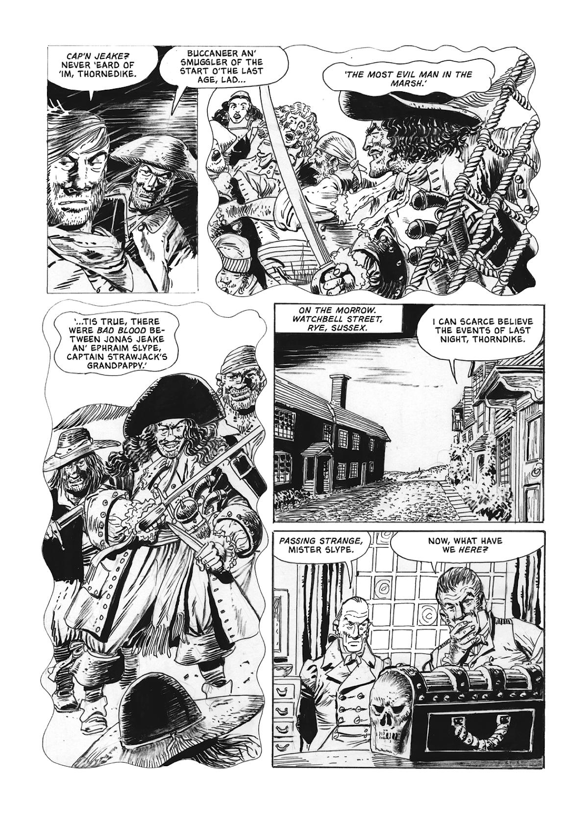 Available now in print and digitally, Strawjack: The Terror of Romney Marsh is written and illustrated by Keith Page, lettered by Robin Jones and edited by John Freeman, with invaluable support from David Hailwood and a smashing series logo created by Jim Campbell.