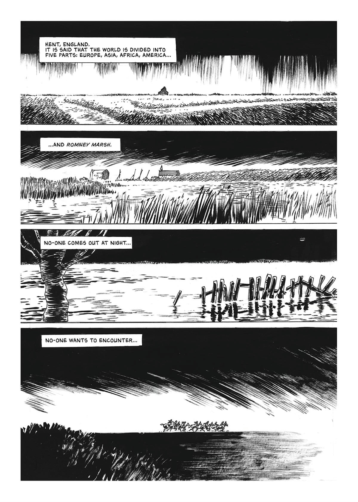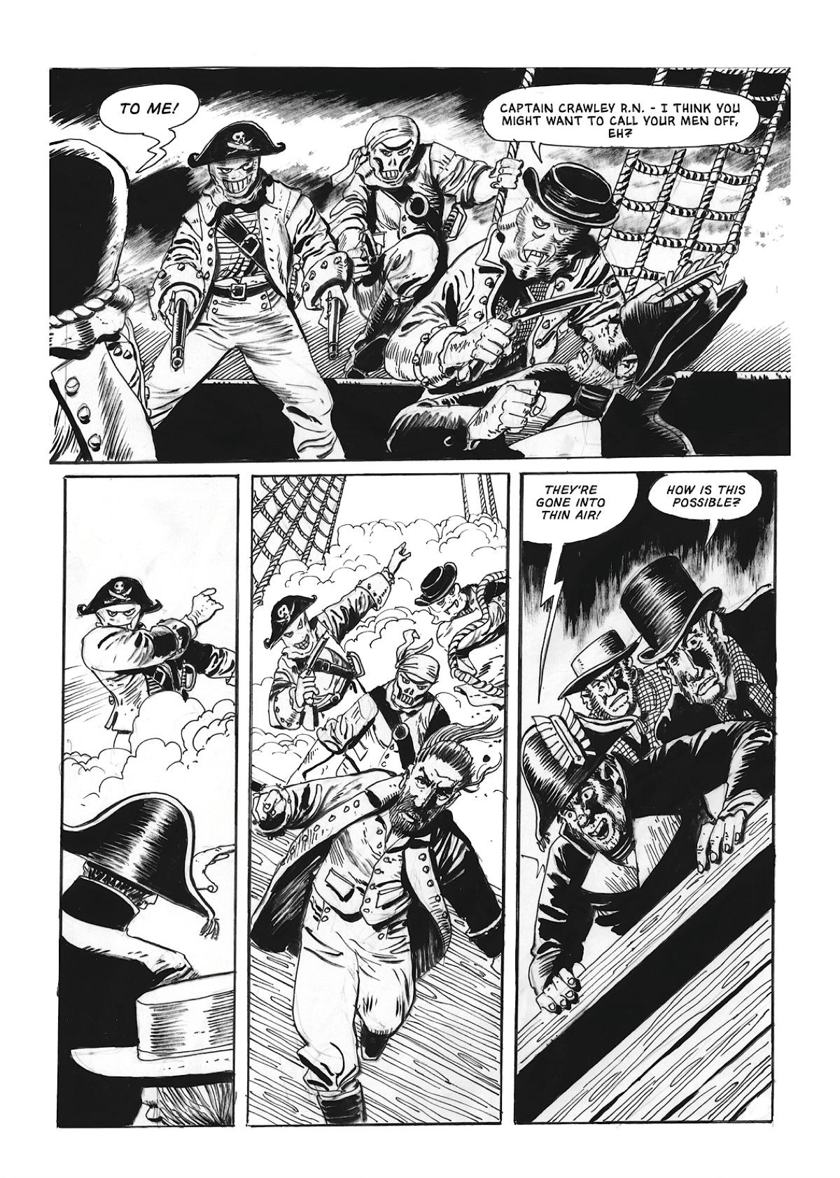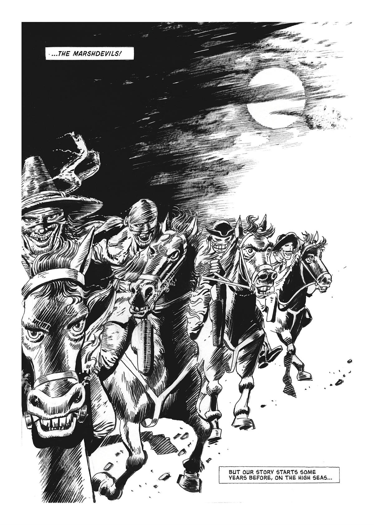 Available now in print and digitally, Strawjack: The Terror of Romney Marsh is written and illustrated by Keith Page, lettered by Robin Jones and edited by John Freeman, with invaluable support from David Hailwood and a smashing series logo created by Jim Campbell