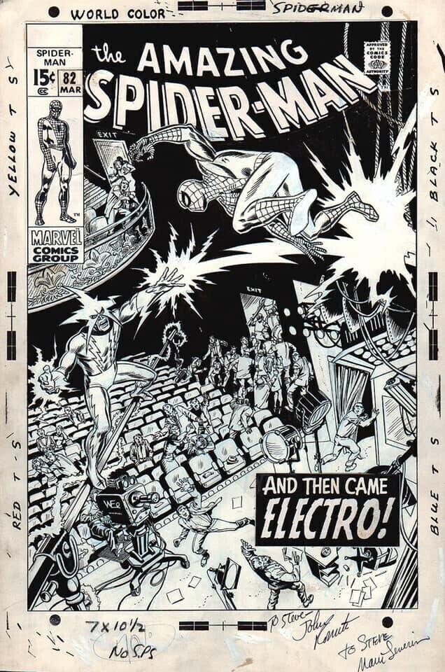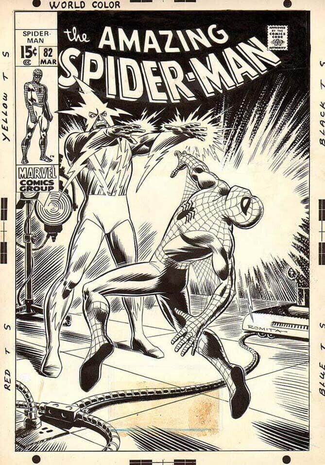 Comic artist Michael Neno recently shared John Romita's rejected cover for Amazing Spider-Man #82, and Marvel’s published cover by Marie Severin, who was assigned to redraw it. (John Romita inked the main figures on the Severin cover).