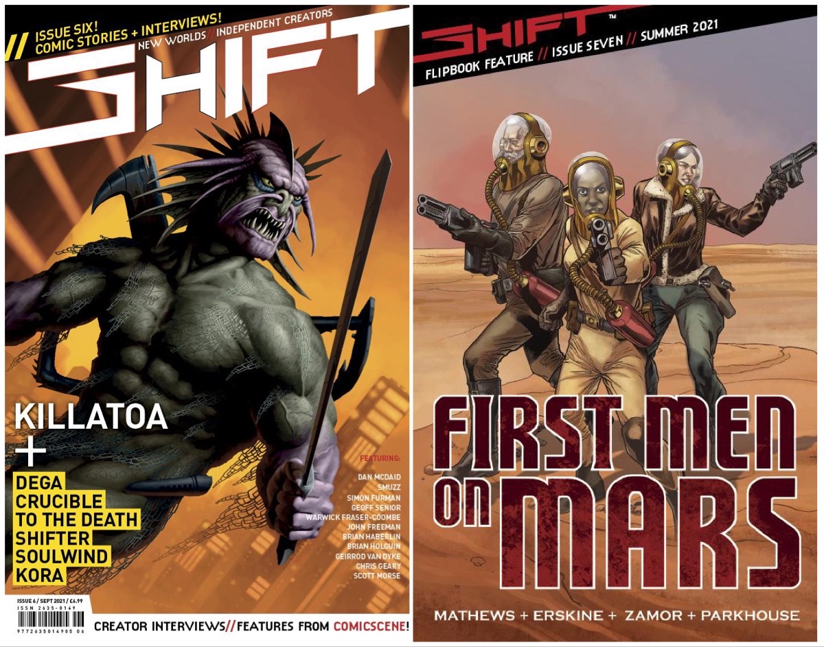 “Crucible”, my science fiction adventure created with former 2000AD artist Smuzz continues in SHIFT Issue 7, on sale soon, an issue by the way that features a fantastic first look at a new crowdfunded comics project written by Paul L. Matthews, with art and world building by Gary Erskine, “First Men on Mars”, who which launches soon.