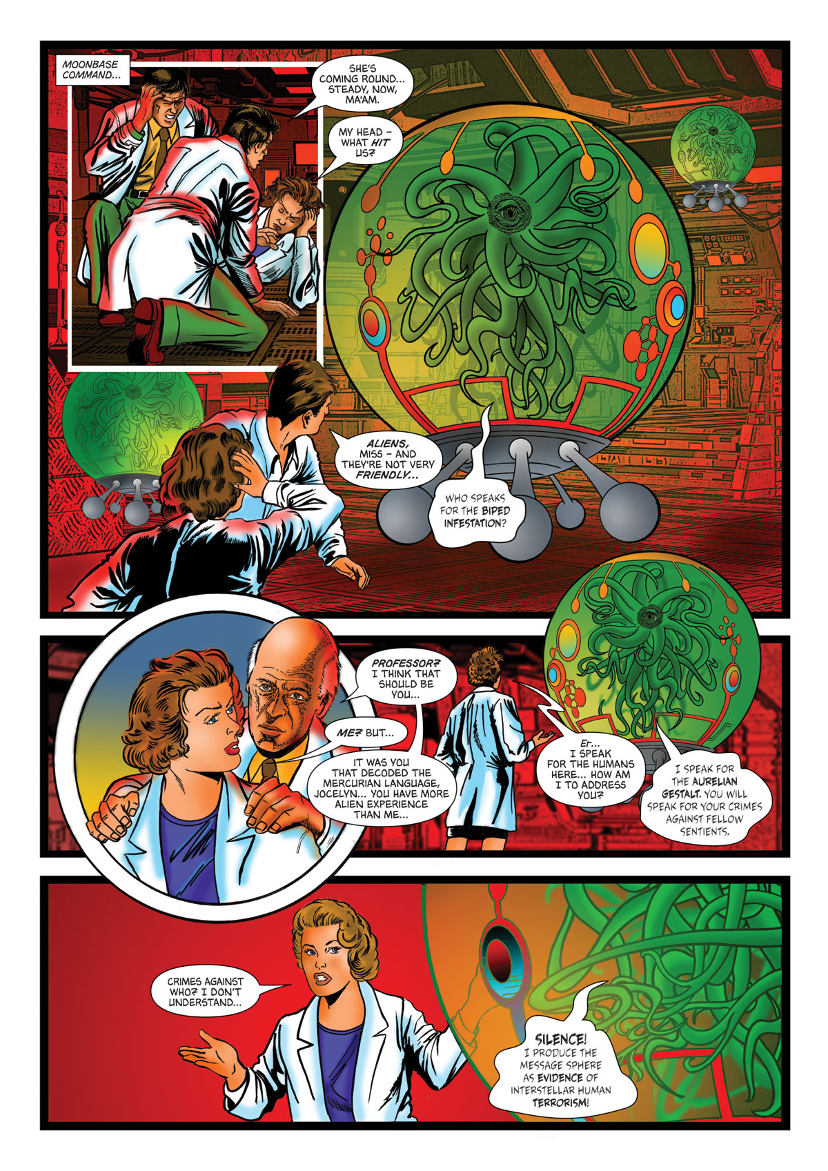 I hope fans will enjoy the story – set on the Moon and featuring some very bizarre aliens designed by Mike.