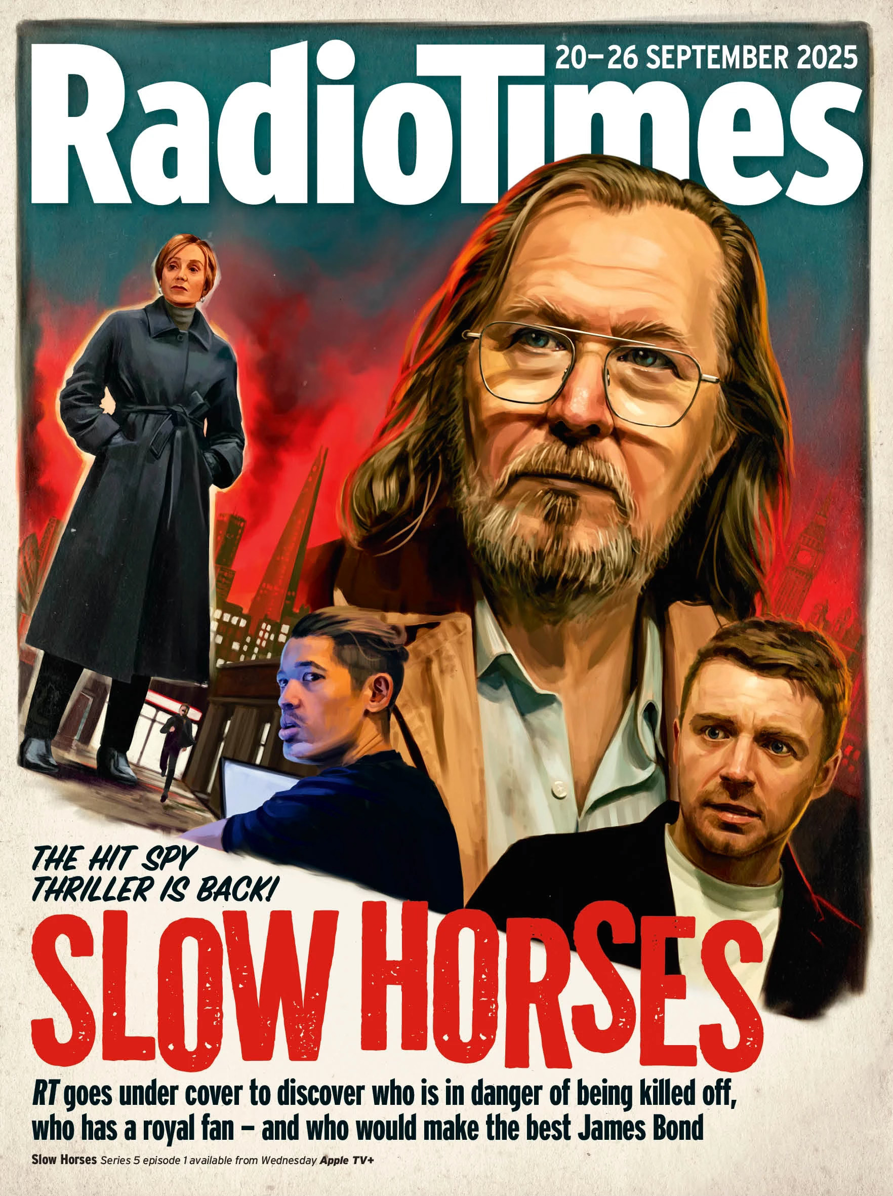 The current Radio Times cover, trailing the new series of Apple TV’s spy drama, Slow Horses, is quite the eye catcher. It’s great to see the TV listings magazine still commissioning the occasional art cover, especially given its long tradition of utilising original art.